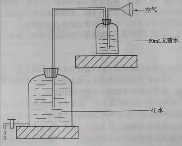 打開圖中大瓶的龍頭,空氣就被抽入無菌水中。待4L水流完,就有4L空氣通過小瓶中的無菌水,也就是4L空氣中的微生物被留存在50mL無菌水中。無菌吸取1mL過濾的水樣進(jìn)行平板計(jì)數(shù),做2個(gè)平行。37℃培養(yǎng)48h計(jì)數(shù)。